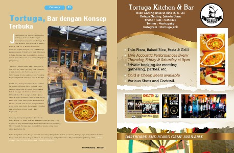 Buka dari pukul 3 sore hingga 1 malam (weekday) dan pukul 3 malam (weekend), Tortuga juga menyediakan fasilitas