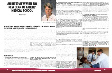 A. I’ d like to see the Medical Partnership as a leader in medical educa�on through collabora�on with Augusta University, the University of Georgia and our community physicians and partners. Together, we can improve the health of our community and increase access to care.