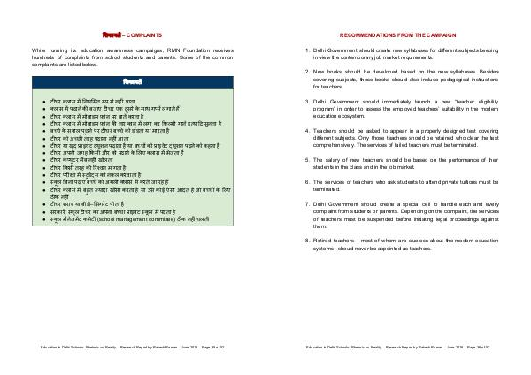 Education in Delhi Schools: Rhetoric vs. Reality. Research Report by Rakesh Raman. June 2018. Page 36 of 52