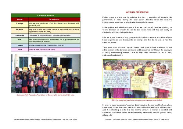 Education in Delhi Schools: Rhetoric vs. Reality. Research Report by Rakesh Raman. June 2018. Page 37 of 52