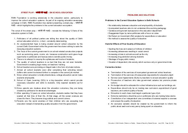 Education in Delhi Schools: Rhetoric vs. Reality. Research Report by Rakesh Raman. June 2018. Page 42 of 52