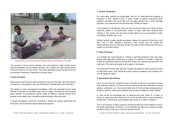 Education in Delhi Schools: Rhetoric vs. Reality. Research Report by Rakesh Raman. June 2018. Page 45 of 52