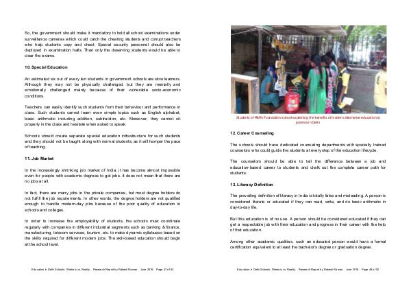 Education in Delhi Schools: Rhetoric vs. Reality. Research Report by Rakesh Raman. June 2018. Page 47 of 52