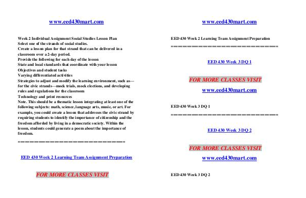 EED 430 Week 2 Learning Team Assignment Preparation ===============================================