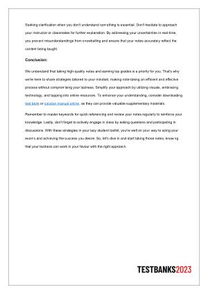 We understand that taking high-quality notes and earning top grades is a priority for you . That ' s why we ' re here to share strategies tailored to your mindset , making note-taking an efficient and effective process without compromising your laziness . Simplify your approach by utilizing visuals , embracing technology , and tapping into online resources . To enhance your understanding , consider downloading test bank or solution manual online , as they can provide valuable supplementary materials .