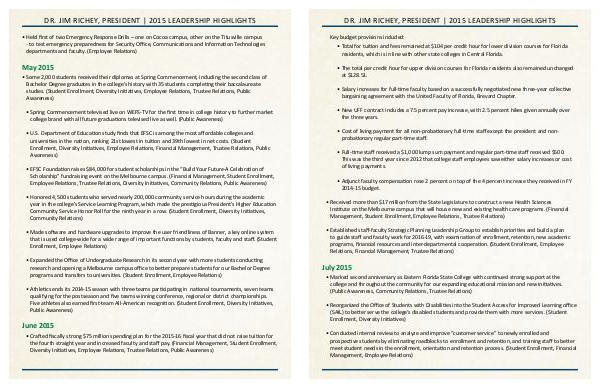 DR. JIM RICHEY, PRESIDENT | 2015 LEADERSHIP HIGHLIGHTS