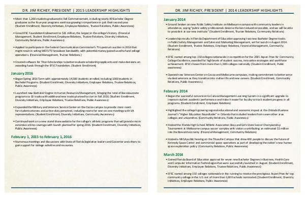 DR. JIM RICHEY, PRESIDENT | 2014 LEADERSHIP HIGHLIGHTS