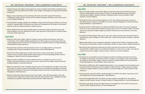 DR. JIM RICHEY, PRESIDENT | 2014 LEADERSHIP HIGHLIGHTS