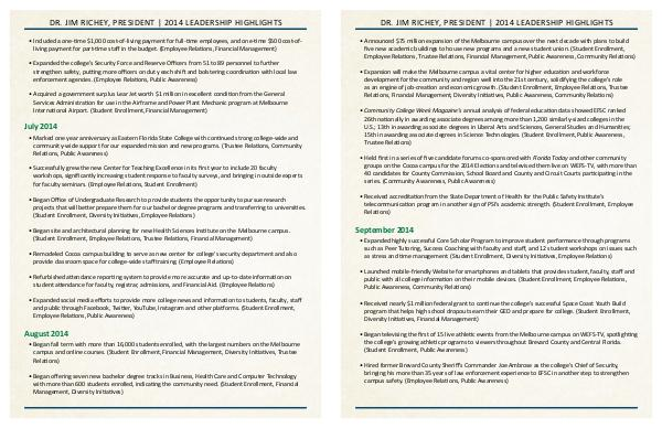 DR. JIM RICHEY, PRESIDENT | 2014 LEADERSHIP HIGHLIGHTS