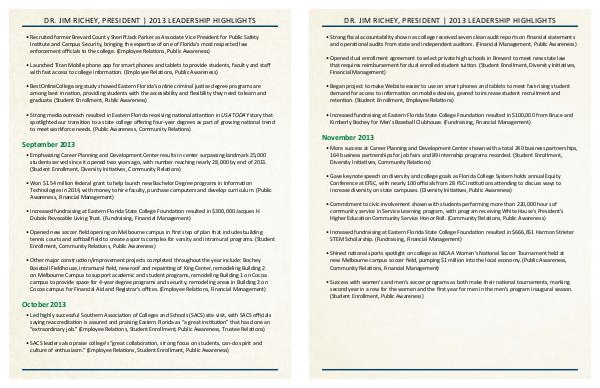 DR. JIM RICHEY, PRESIDENT | 2013 LEADERSHIP HIGHLIGHTS