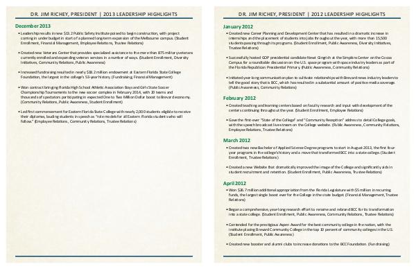 DR. JIM RICHEY, PRESIDENT | 2012 LEADERSHIP HIGHLIGHTS