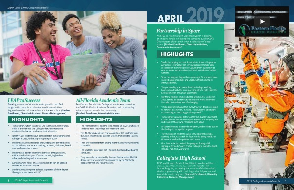 Enrollment, Diversity Initiatives, Financial Management) Ten Eastern Florida State College students were named to