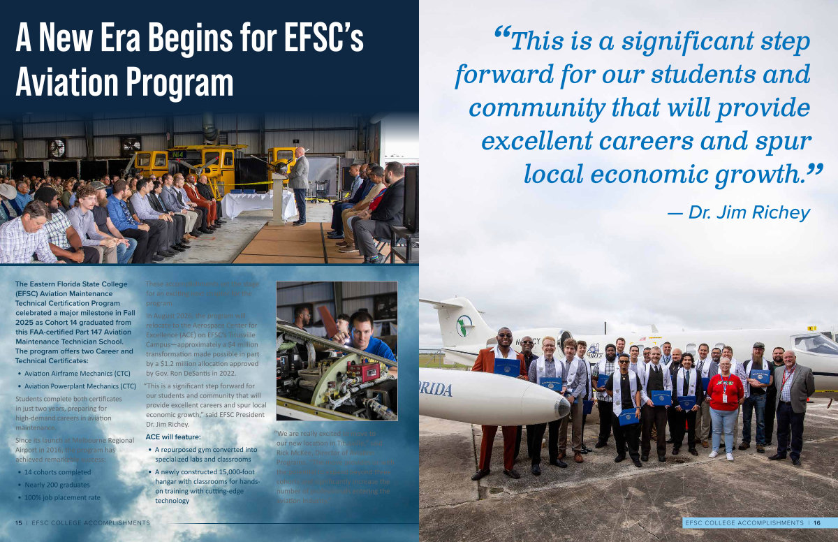 In August 2026, the program will relocate to the Aerospace Center for Excellence( ACE) on EFSC’ s Titusville Campus— approximately a $ 4 million transformation made possible in part by a $ 1.2 million allocation approved by Gov. Ron DeSantis in 2022.
