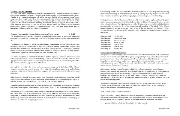 The Superintendent or his / her designee shall be responsible for overseeing the implementation of this policy and the accompanying rules and for advising the Board of the need for any future amendments or revisions to the policy / regulations . The Superintendent or his / her designee may develop additional administrative procedures / rules governing the day-to-day management and operations of the Enfield Public Schools ’ computers , networks and Internet services system as long as they are consistent with the Board ’ s policy . The Superintendent may delegate specific responsibilities to building principals and others as he / she deems appropriate .