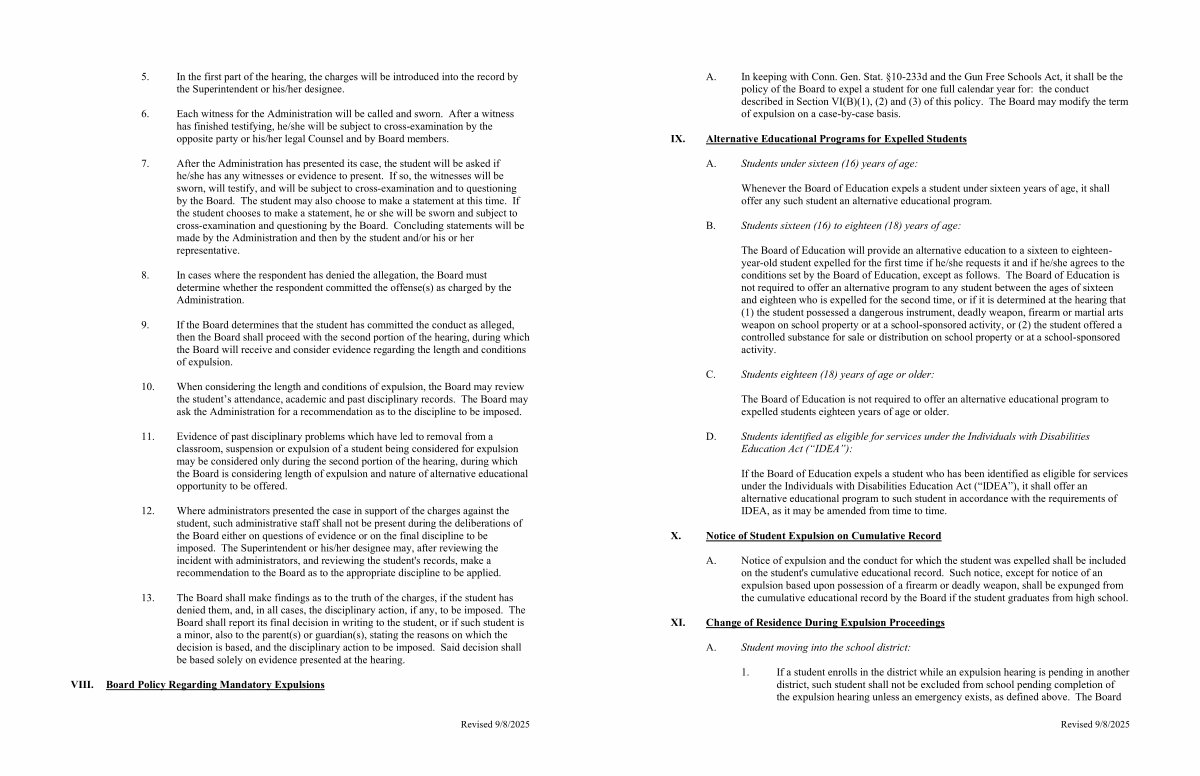 VIII. Board Policy Regarding Mandatory Expulsions