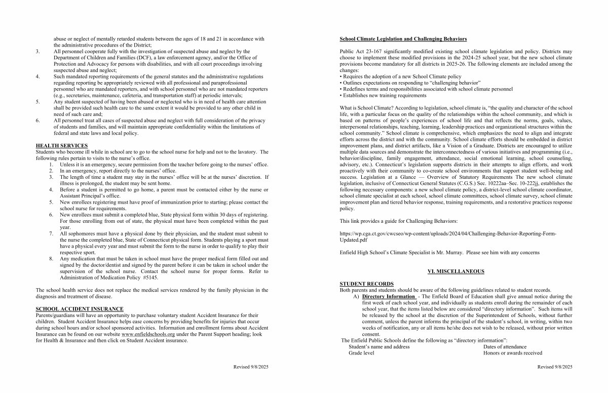 SCHOOL ACCIDENT INSURANCE Parents / guardians will have an opportunity to purchase voluntary student Accident Insurance for their children. Student Accident Insurance helps ease concerns by providing benefits for injuries that occur during school hours and / or school sponsored activities. Information and enrollment forms about Accident Insurance can be found on our website www. enfieldschools. org under the Parent Support heading; look for Health & Insurance and then click on Student Accident insurance.