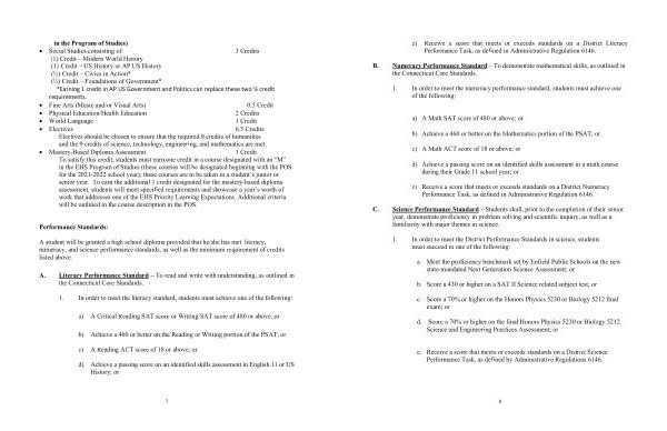 • Mastery-Based Diploma Assessment 1 Credit To satisfy this credit , students must earn one credit in a course designated with an “ M ” in the EHS Program of Studies ( these courses will be designated beginning with the POS for the 2021-2022 school year ); these courses are to be taken in a student ’ s junior or senior year . To earn the additional 1 credit designated for the mastery-based diploma assessment , students will meet specified requirements and showcase a year ’ s worth of work that addresses one of the EHS Priority Learning Expectations . Additional criteria will be outlined in the course description in the POS .