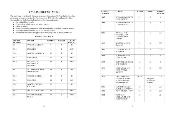 5032 HONORS ENGLISH 11 11 1 H 5033 ENGLISH 11 11 1 CCP