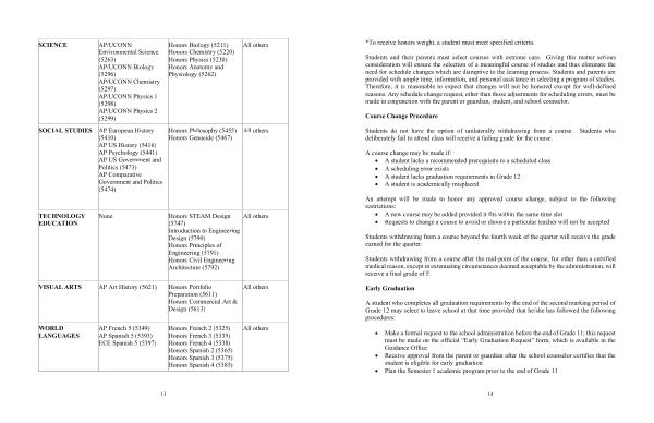 Honors Biology ( 5211 ) Honors Chemistry ( 5220 ) Honors Physics ( 5230 ) Honors Anatomy and Physiology ( 5262 ) |