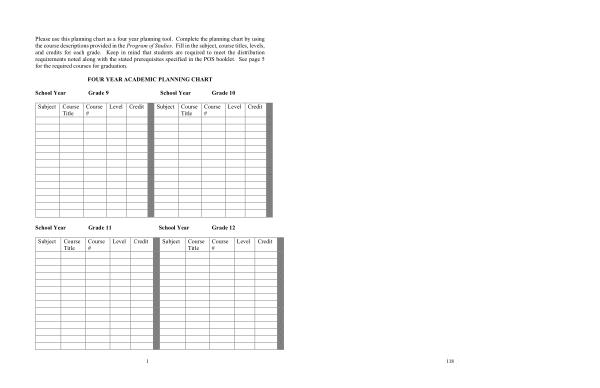 Please use this planning chart as a four year planning tool . Complete the planning chart by using the course descriptions provided in the Program of Studies . Fill in the subject , course titles , levels , and credits for each grade . Keep in mind that students are required to meet the distribution requirements noted along with the stated prerequisites specified in the POS booklet . See page 5 for the required courses for graduation .