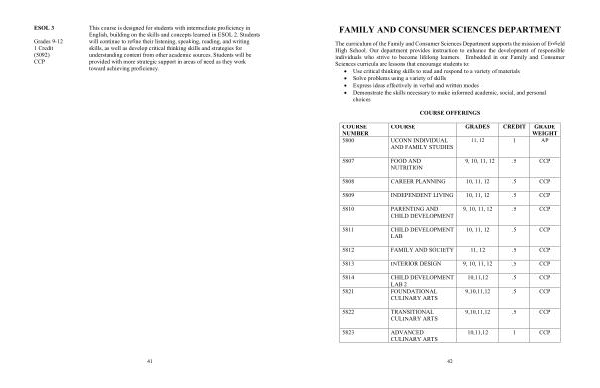 The curriculum of the Family and Consumer Sciences Department supports the mission of Enfield High School . Our department provides instruction to enhance the development of responsible individuals who strive to become lifelong learners . Embedded in our Family and Consumer Sciences curricula are lessons that encourage students to :