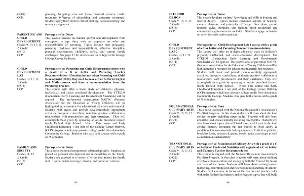 Prerequisite ( s ): Parenting and Child Development course with a grade of a B or better and Parenting Teacher Recommendation . If student has not taken Parenting and Child Development ( 5810 ), they need to have a B or better in English and Math courses and have a recommendation from the Parenting Teacher . This course will offer a basic study of children ’ s physical , intellectual , and social emotional development . The CTELDS ( Connecticut Early Learning and Development Standards ) will be applied . The professional organization NAEYC ( National Association for the Education of Young Children ) will be highlighted as a resource for educational materials and research . Students will create and provide developmentally appropriate activities , integrate curriculum , maintain positive collaborative relationships with preschoolers and their caretakers . They will accomplish these goals by operating an onsite preschool located inside Enfield High School . Note : This course and Early Childhood Education 1 are part of the College Career Pathway ( CCP ) program which may provide college credit from Asnuntuck Community College . Students who pass both courses with a grade of 75 or higher .