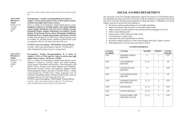 The curriculum of the Social Studies Department supports the mission of Enfield High School . Our department provides instruction that focuses on the development of responsible individuals who strive to become lifelong learners prepared for college and careers . Embedded in our Social Studies curricula are lessons that teach students to :
