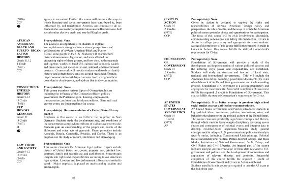 CONNECTICUT / ENFIELD HISTORY Grade 9-12 . 5 Credit ( 5465 ) CCP HONORS GENOCIDE Grade 12 . 5 Credit ( 5467 ) H
