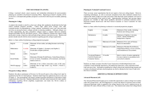A student who intends to enroll in a four-year college after graduation should plan his/her high