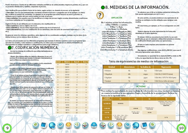 Para realizar la equivalencia de unas medidas de información con otras, tendremos siempre en cuenta la medida a la que queremos llegar y la medida de la que partimos. Rellena los huecos de la siguiente tabla: