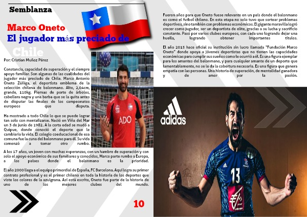 El año 2015 hace oficial su institución sin lucro llamada “Fundación Marco Oneto” donde apoya a jóvenes deportistas que no tienen las capacidades económicas para cumplir sus sueños como le ocurrió a él. Es una figura ejemplar para los amantes del balonmano, y para cualquier amante de un deporte que lamentablemente, no se le da la cobertura necesaria. Es una figura que genera empatía con las personas. Una historia de superación, de mentalidad ganadora y de amor por la pasión.