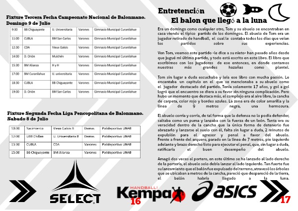 Tom sin lugar a duda escuchaba y leía ese libro con mucha pasión. Le encantaba un capitulo en el que se mencionaba a su abuelo como el jugador destacado del partido. Tenía solamente 17 años, y gol a gol logró que el encuentro se diera a su favor sin ninguna complicación. Pero hubo un momento que destaca más, el complejo era al aire libre, la cancha de carpeta, color rojo y bordes azules. La zona era de color amarilla y la línea de 9 metros negra, una hermosura.