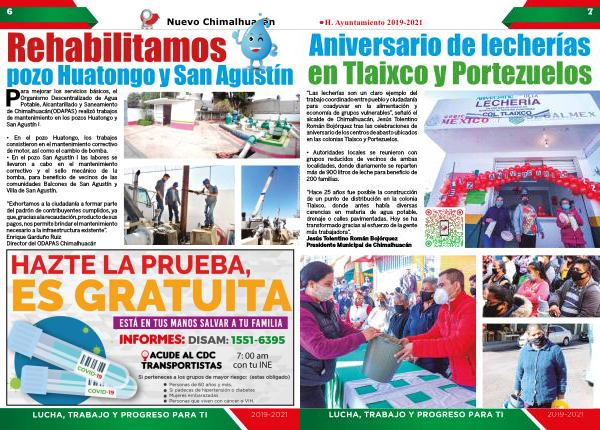 “ Hace 25 años fue posible la construcción de un punto de distribución en la colonia Tlaixco , donde antes había diversas carencias en materia de agua potable , drenaje o calles pavimentadas . Hoy se ha transformado gracias al esfuerzo de la gente más trabajadora ”. Jesús Tolentino Román Bojórquez Presidente Municipal de Chimalhuacán