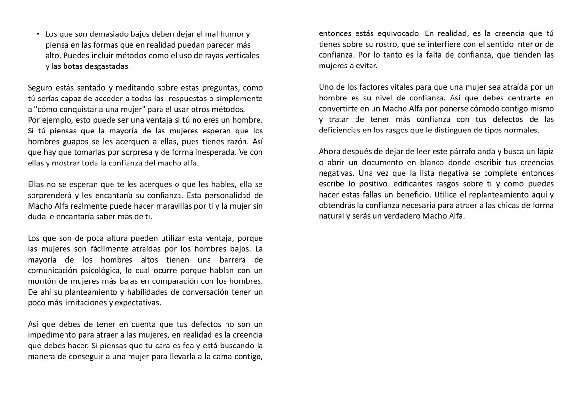 Ahora después de dejar de leer este párrafo anda y busca un lápiz o abrir un documento en blanco donde escribir tus creencias negativas. Una vez que la lista negativa se complete entonces escribe lo positivo, edificantes rasgos sobre ti y cómo puedes hacer estas fallas un beneficio. Utilice el replanteamiento aquí y obtendrás la confianza necesaria para atraer a las chicas de forma natural y serás un verdadero Macho Alfa.