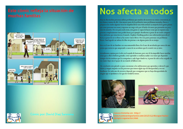 En conclusión este párrafo es para concienciar a los adolescentes que aprendan a valorar lo que tienen y tengan empatía con las personas que tienen algún tipo de discapacidad y con sus familiares. De cada uno de nosotros depende que consigamos que no haya discapacidades de ningún tipo si ayudamos a los que de verdad la tienen.