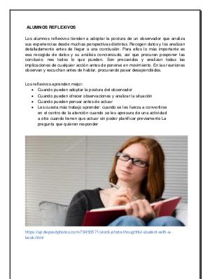 Los alumnos reflexivos tienden a adoptar la postura de un observador que analiza