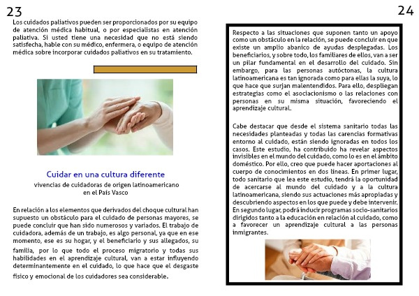 Cabe destacar que desde el sistema sanitario todas las necesidades planteadas y todas las carencias formativas entorno al cuidado, están siendo ignoradas en todos los casos. Este estudio, ha contribuido ha revelar aspectos invisibles en el mundo del cuidado, como lo es en el ámbito doméstico. Por ello, creo que puede hacer aportaciones al cuerpo de conocimientos en dos líneas. En primer lugar, todo sanitario que lea este estudio, tendrá la oportunidad de acercarse al mundo del cuidado y a la cultura latinoamericana, siendo sus actuaciones más apropiadas y descubriendo aspectos en los que puede y debe intervenir. En segundo lugar, podrá inducir programas socio-sanitarios dirigidos tanto a la educación en relación al cuidado, como a favorecer un aprendizaje cultural a las personas inmigrantes.