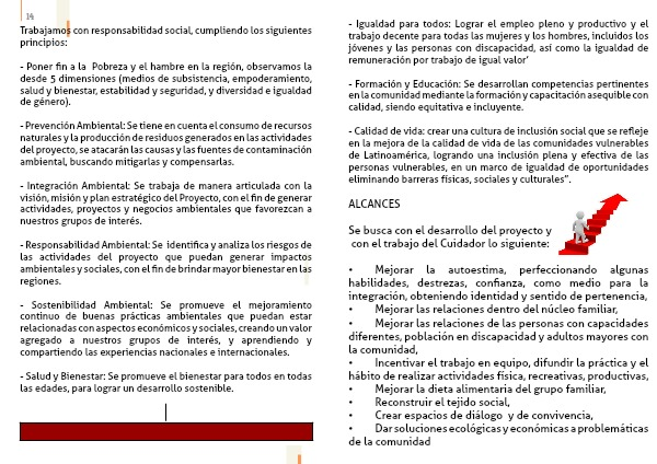 - Calidad de vida: crear una cultura de inclusión social que se refleje en la mejora de la calidad de vida de las comunidades vulnerables de Latinoamérica, logrando una inclusión plena y efectiva de las personas vulnerables, en un marco de igualdad de oportunidades eliminando barreras físicas, sociales y culturales”.