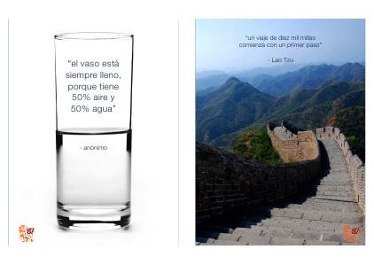 “ el vaso está siempre lleno, porque tiene 50 % aire y 50 % agua”- anónimo