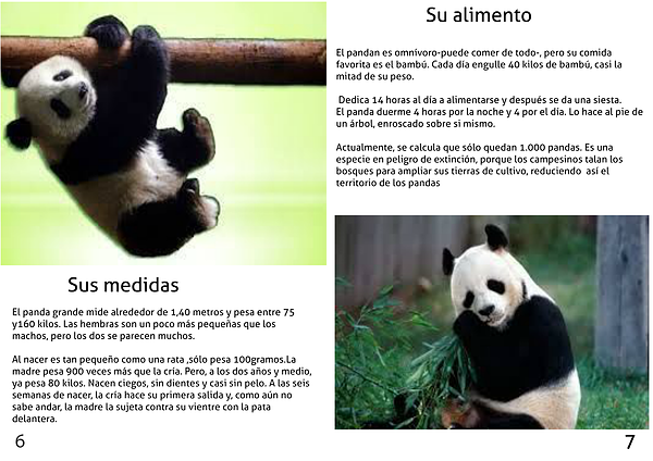 El pandan es omnívoro-puede comer de todo-, pero su comida favorita es el bambú. Cada día engulle 40 kilos de bambú, casi la mitad de su peso.