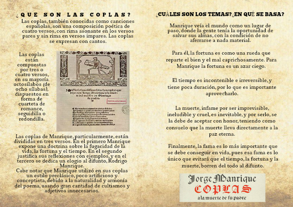 Manrique veía el mundo como un lugar de paso, donde la gente tenía la oportunidad de salvar sus almas, con la condición de no aferrarse a nada material.