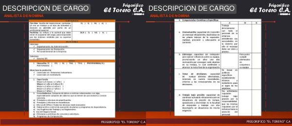 DESCRIPCION DE CARGO ANALISTA DE NOMINA Frigorifico El Torero J- C.A. 00102231-4 27 FRIGORIFICO “EL TORERO” C.A