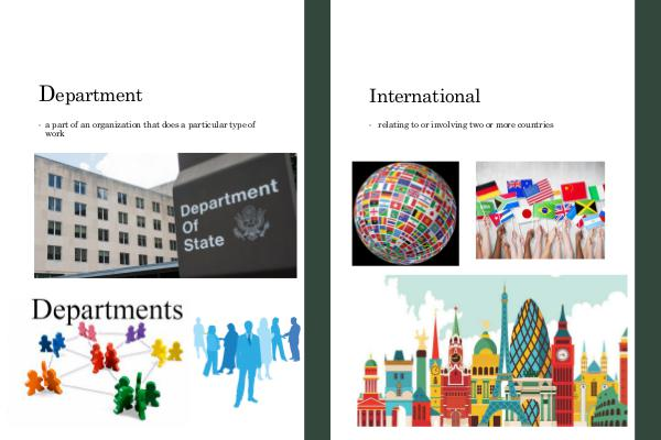 D epartment • a part of an organization that does a particular type of work