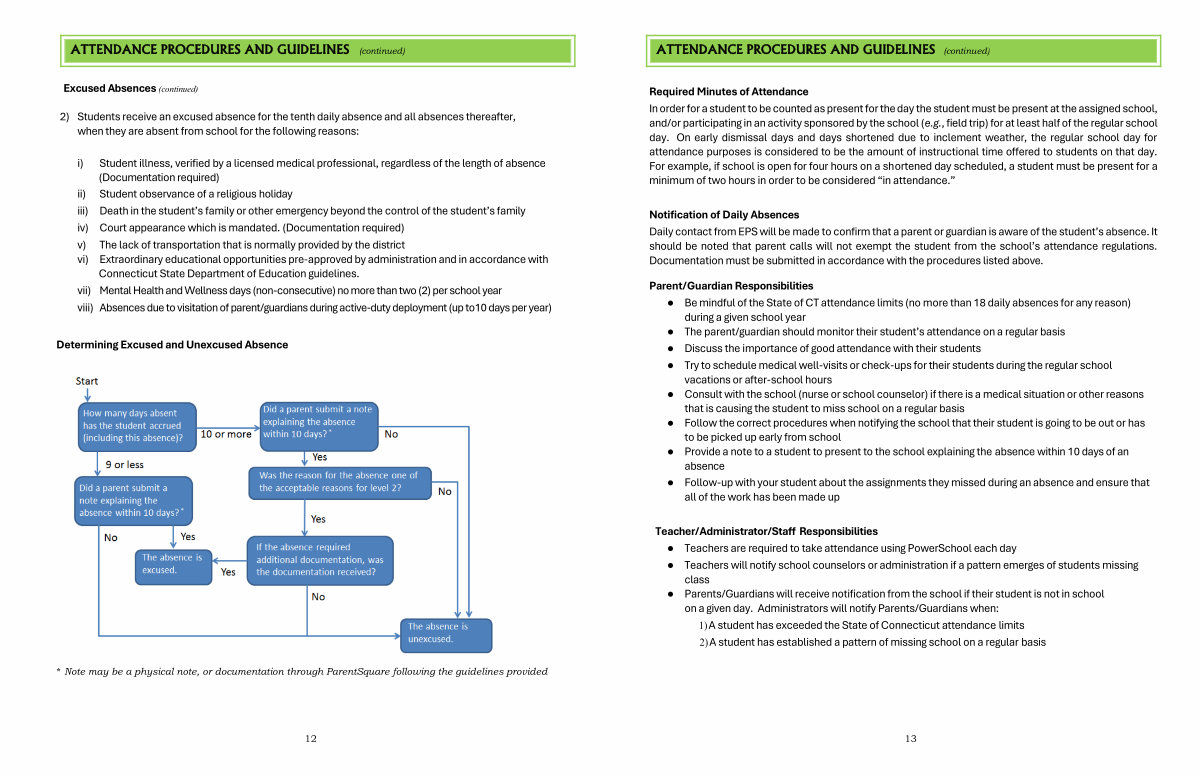 ● Be mindful of the State of CT attendance limits( no more than 18 daily absences for any reason) during a given school year
