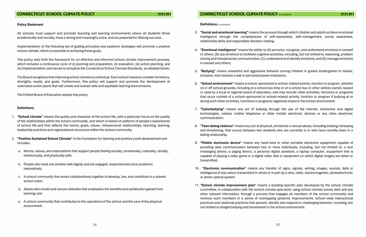 CONNECTICUT SCHOOL CLIMATE POLICY( continued) 5131.911