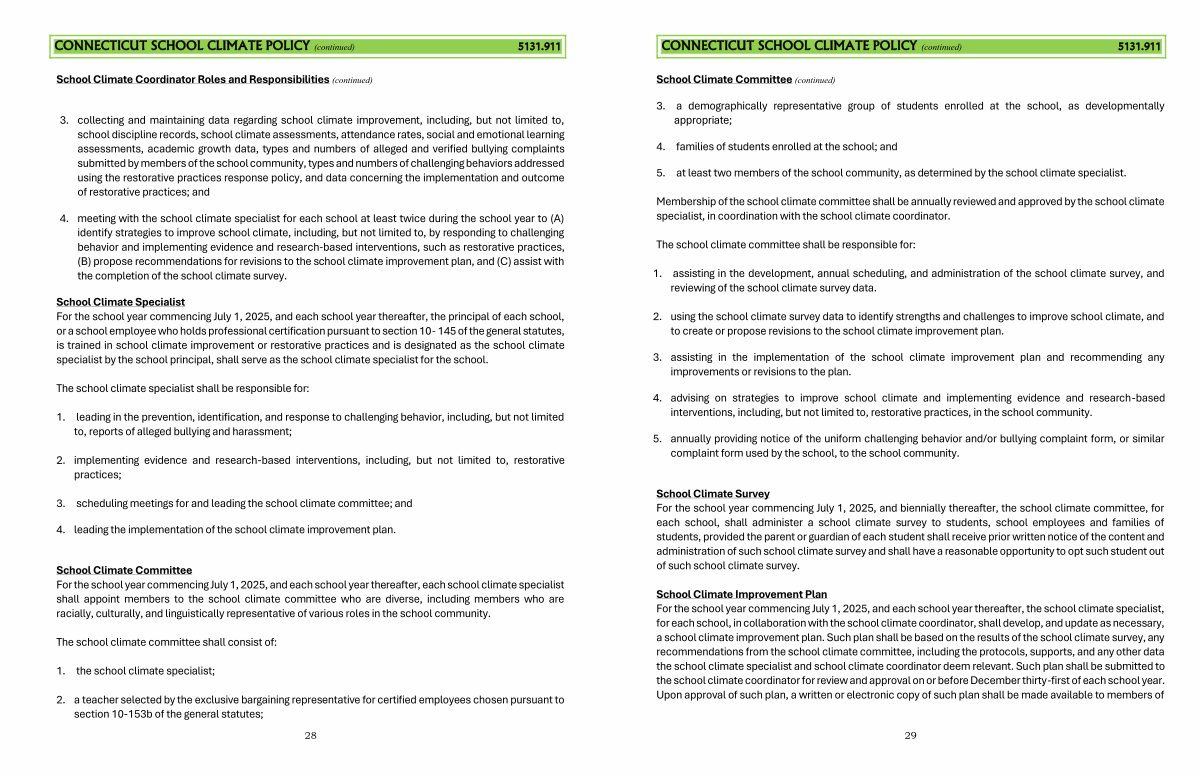 CONNECTICUT SCHOOL CLIMATE POLICY( continued) 5131.911