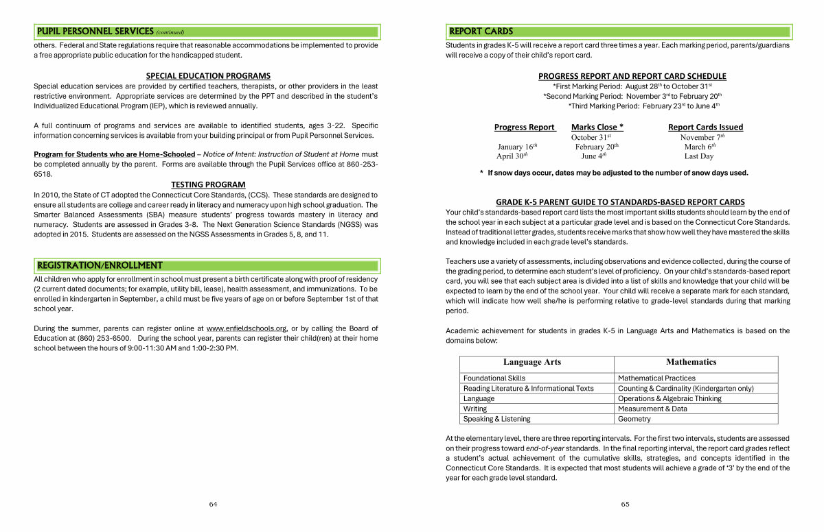 Program for Students who are Home-Schooled – Notice of Intent: Instruction of Student at Home must be completed annually by the parent. Forms are available through the Pupil Services office at 860-253- 6518.