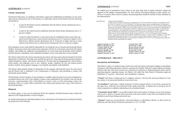 ATTENDANCE - TRUANCY 5113.2 Introduction and Definitions