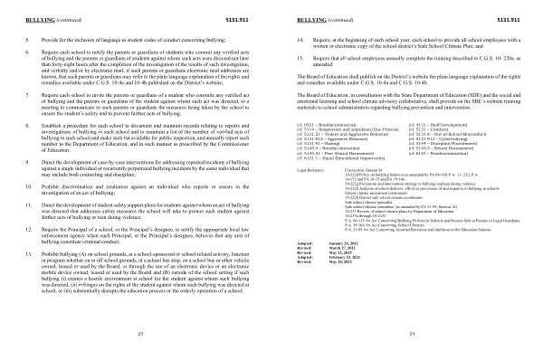 BULLYING ( continued ) 5131.911