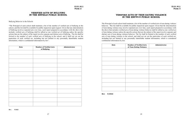 VERIFIED ACTS OF TEEN DATING VIOLENCE IN THE ENFIELD PUBLIC SCHOOL